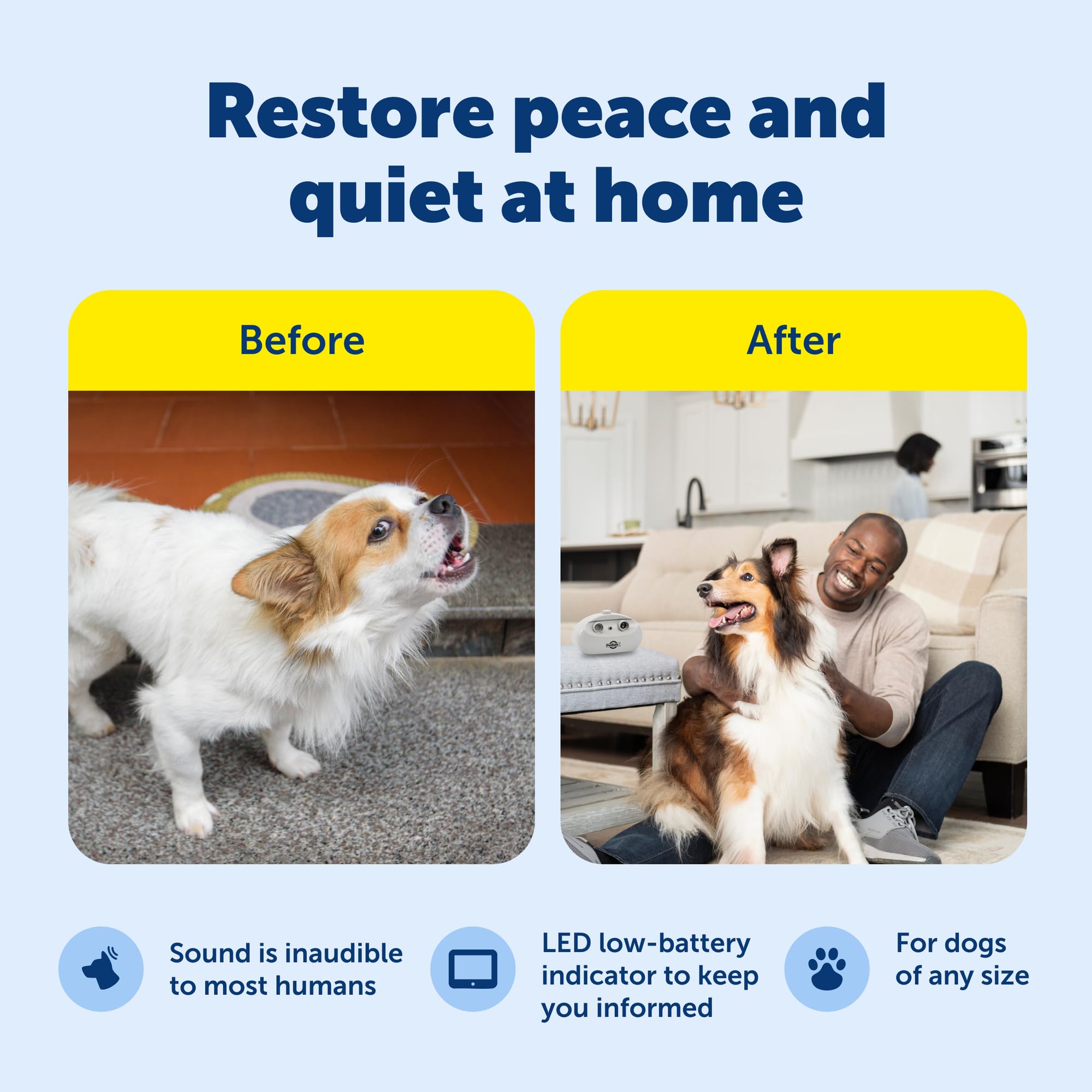 - Restore Peace Indoors: The PetSafe Indoor Bark Control is a tabletop bark trainer that reduces barking using ultrasonic tones, making it ideal for any size dog and simple to set up