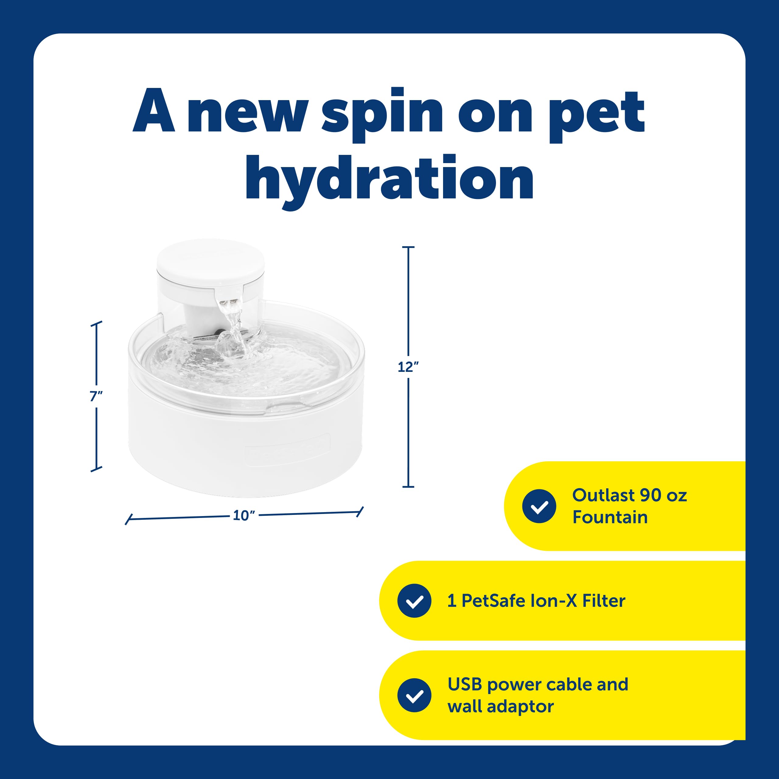 PetSafe Outlast Cat Fountain - Pumpless Water Fountain - HydroSpin Continuous Water Flow - Dual Ion-X Filtration - Dishwasher Safe - Smart Sensor Fountain - 90 oz—
